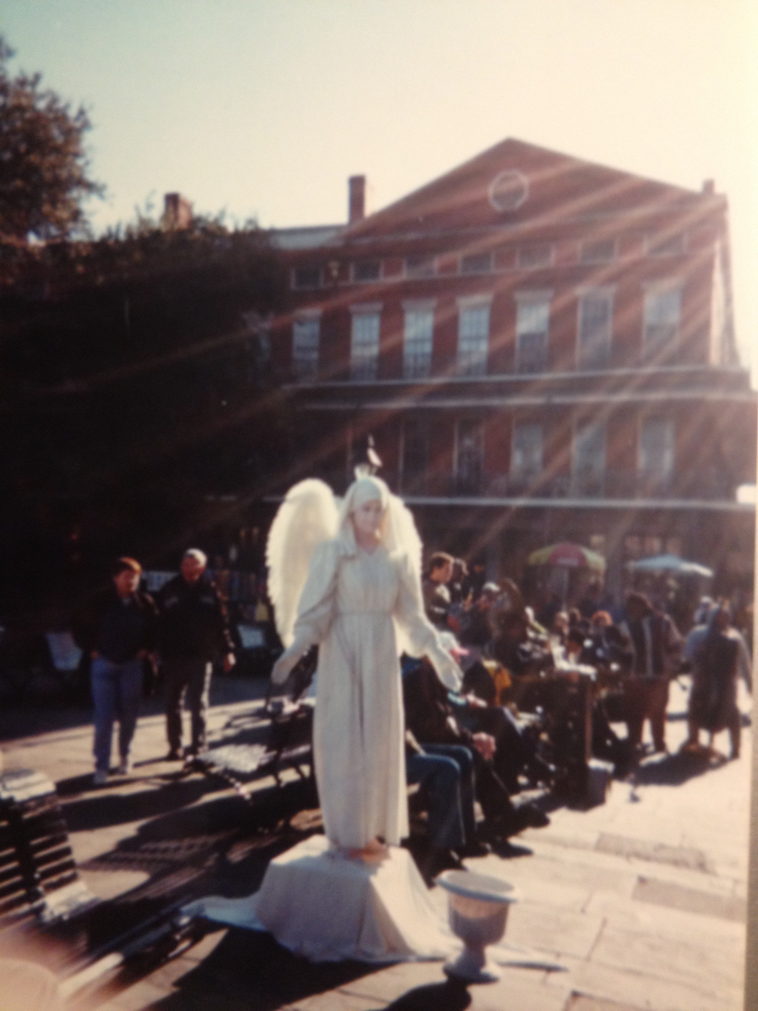 I remember the first time I saw someone wearing body paint as performance art. It was in New Orleans at the dawn of the 21st century. I was so startled by the minimalist art of the performance that I took a photo. I attributed the monochrome wings to the locale; steeped with after-life mysticism. It was a statement, one that eluded me, but a statement nonetheless. Perhaps the painted lady intended for us to contemplate the fine line between the living and the dead and accepted coins and paper money for her illuminative efforts. Or she was just a savvy out of work mime.