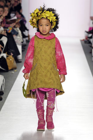 Most children do not do their own shopping and most do not have their own income stream, so presumably big people are buying wee clothes. Now if you are to believe the media and your own bank statements, these are not exactly flush times. Of course these chain stores for the toddling set are not pricey, but the only way they are staying in business is if lots of inventory is being liquidated often. A child’s entire wardrobe does not need to be replaced every season (unless the child has a rapid growth syndrome.) A winter jacket can usually make it through two New Years. Even children without siblings could be wearing second hand clothes. And maybe they do. But if so, why all these shops? It’s hard to believe that stores filled with teeny fashion trends are actually going after the “necessity market.” Fake fur shrugs and sequined mini-skirts speak more to child styling versus child dressing.