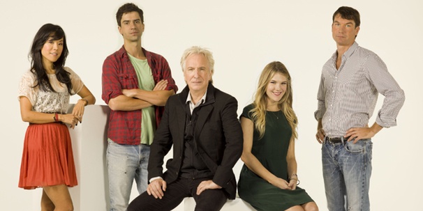 One of these workshops is the setting for the new Theresa Rebeck play Seminar.  Four young(ish) fiction writers are gathering weekly in an upper west side apartment to reap the wisdom and guidance of a larger than life writer/editor.  The bombastic arrogant tutor, Leonard (Alan Rickman) creates a centrifuge where only the talented survive.  The four writers; Lily Rabe, Hamish Linklater, Jerry O’Connell and Hettienne Park are easily recognizable types.  Kate (Rabe) is our Bennington graduate host.  She lives in her parent’s nine room rent – controlled apartment, presumably alone.  Rabe is an absolutely delightful actress.  (The part of Kate is somewhat mannered and at times Ms. Rabe’s similarity to her mother was staggering.)  Martin (Linklater,) Kate’s friend from high school is quiet, insecure, stewing in his own juices.  Douglas (O’Connell) is an amusing blowhard with a family name, connections and penchant for unknowingly inventing words.  Izzy (Park) carries her sexuality like a miniature chihuahua.  She is never without it and uses it as if she’s invented it.  Three guesses which one of these people is the one with the earth shattering talent.