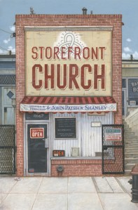 Aptly, the new space is being christened with Storefront Church.  Written and directed by John Patrick Shanley’s, Storefront Church is the final installment in his “church and state” trilogy.  (The first two were Doubt and Defiance.)  Storefront Church would not be recognizable as part of this trilogy, except we are told that it is.  Doubt, about the Catholic Church, and Defiance about the military (both directed by Doug Hughes) were tightly told tales of imposing institutions.  It’s difficult to put the same dramatic significance upon banking.