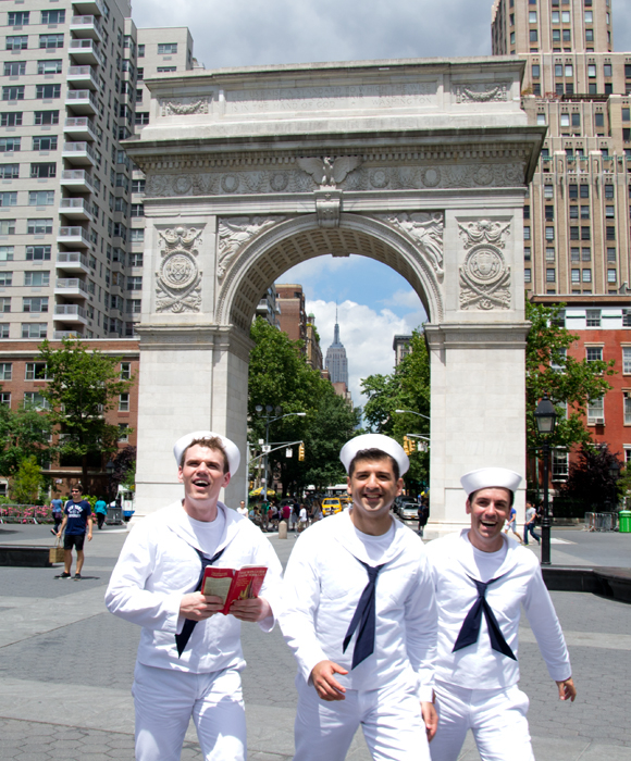 A surefire (at least temporary) cure for that loneliness is to head over to the Lyric Theatre for the most recent (nearly perfect) revival of On The Town. Leonard Bernstein’s moving and joyful score (conducted by John Miller) and Jerome Robbins’ inspired dance would be enough to lift one’s spirit and believe that New York is in fact a helluva town. But the execution of Betty Comden and Adolph Green’s Book & Lyrics are what make this production soar. Much attention is paid to the dance and that’s the way it should be. On The Town is first and foremost a dance show (originating from by Mr. Robbins’ ballet, Fancy Free.)