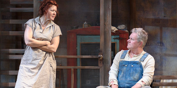 At first glimpse Josie (Kim Martin-Cotten) is a lumbering, smudged and bedraggled farmwoman. She shifts her center of gravity down and splays her legs as she barrels across the stage. But when she slows down and we get a good look, she’s quite lovely. Perhaps, when this play was originally produced (1947) she might be considered a bigger woman, but by today’s standards she has an enviable figure. Much of the play is centered around her insecurities in her appearance. By casting a woman as classically pretty as Ms. Martin-Cotten this device seems quite modern. Her struggle seems all the more real because of its psychological origins.
